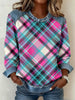Women's Vintage Plaid Print Denim Patchwork Sweatshirt