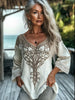 Women's Vintage Tribal Celtic Knot Lace V Neck Linen Shirt